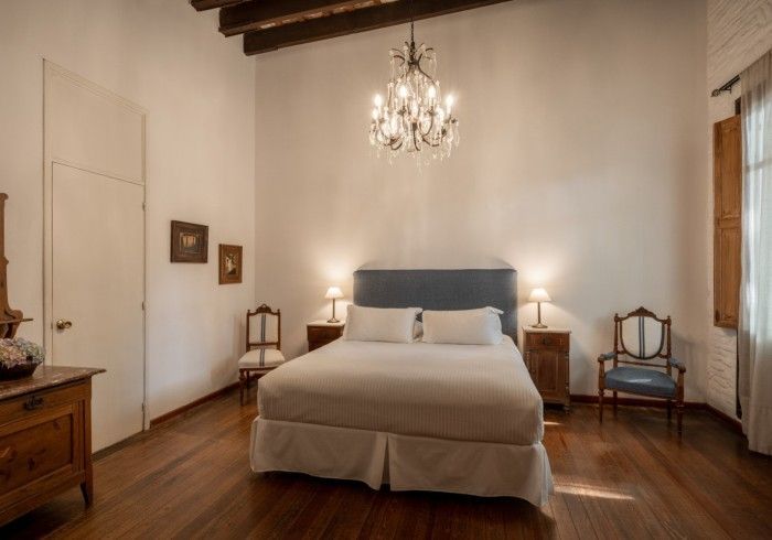 Delicadeza en su máxima expresión. Iluminada por los caireles de su preciosa araña, la suite deluxe es única en su tipo, con detalles por doquier se caracteriza por su exclusivo mobiliario de época, sus pisos de pinotea originales y una hermosa ventana a la calle.